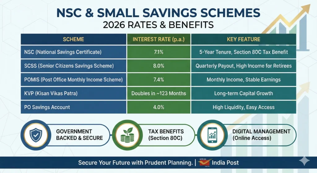 २०२६ मधील NSC आणि पोस्ट ऑफिसच्या अल्पबचत योजना: नवीन व्याजदर, कर सवलती आणि सुरक्षित गुंतवणुकीचा महामार्ग